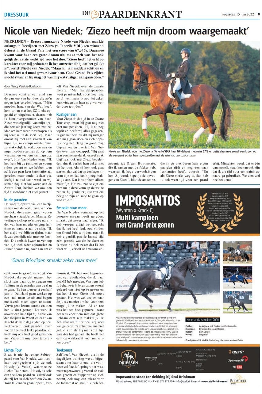 In 2014 heb ik mijn man Jeroen Maarse ontmoet, hij komt uit Limburg en we moesten 2 uur rijden om elkaar te zien in het weekend. Na een paar jaar hebben we dan ook besloten om te gaan samenwonen, inmiddels hebben we samen een fijn koophuis in Boxmeer. Ziezo is mee verhuisd naar de andere kant van het land. Ik had een leuke kantoorbaan en paarden waren voor mij een uitlaatklep. Toen Ziezo en ik intermediair II reden ging het bij mij toch kriebelen om het professioneler aan te pakken en door te gaan trainen voor de Grand Prix. Ik heb toen besloten mijn kantoorbaan op te zeggen om fulltime te gaan paardrijden. Ik heb eerst een halfjaar in Duitsland gewerkt en toen twee jaar bij Stal Korenbloem in Weert gewerkt. Deze ervaring heeft me geholpen om mijn Grand Prix droom te behalen, in de zomer van 2022 hebben Ziezo en ik ons Grand Prix debuut gewonnen met 67%.